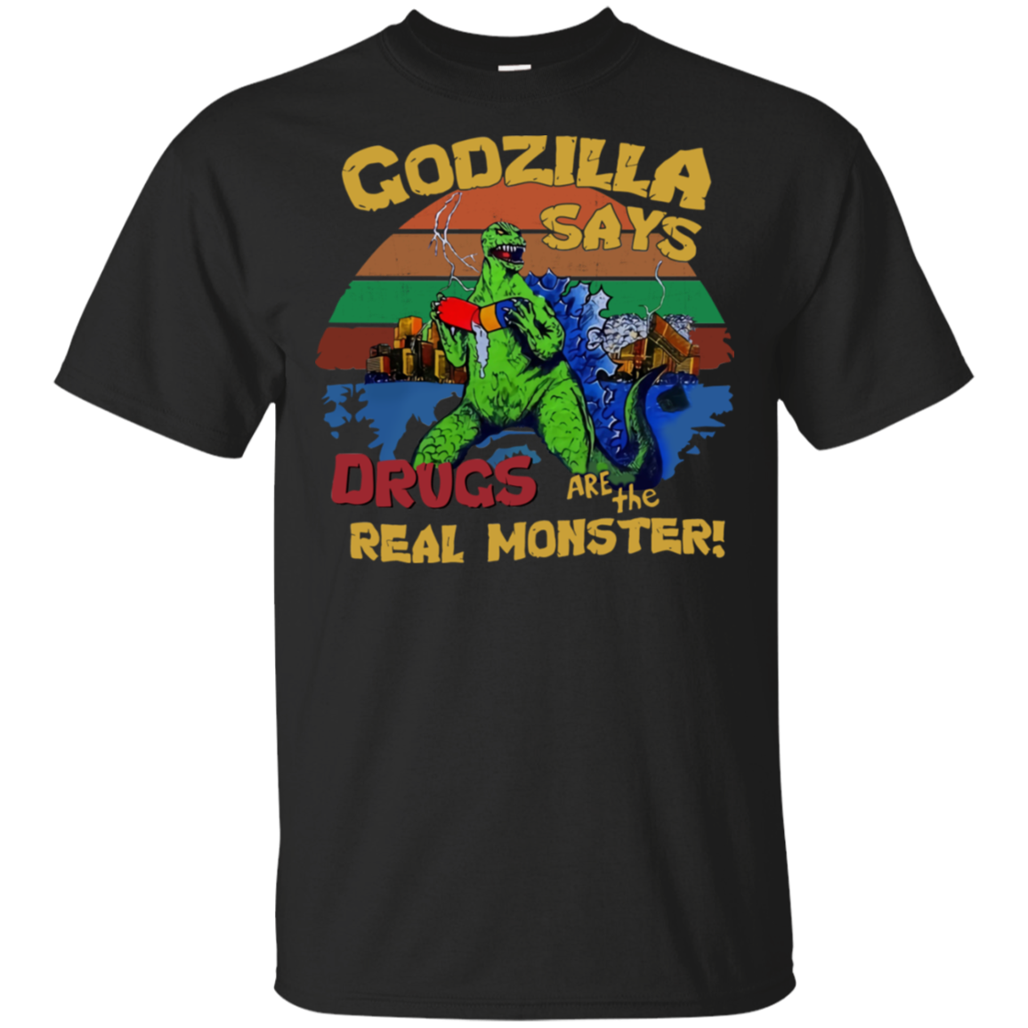 Godzilla Says Drugs Are The Real Monster Black T-Shirt Men